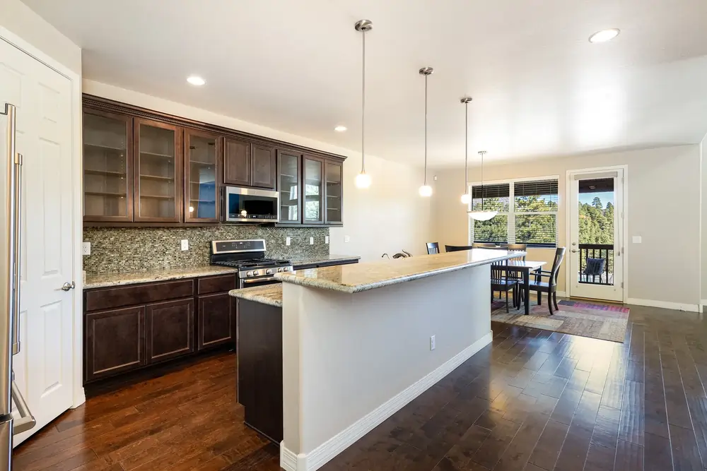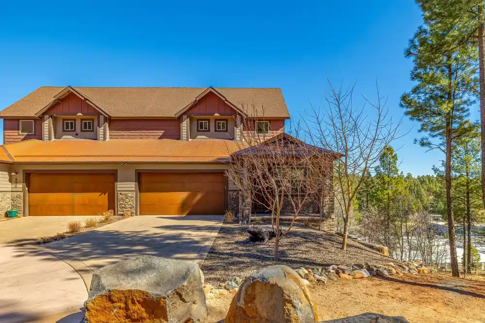 This home has an ELEVATOR! You envision sitting on one of your decks in awe of gorgeous mountain views, enjoying the sounds of rustling pines. You step out your door to a wooded trail that takes you on a short walk to downtown Flagstaff, or to the glorious beauty of Buffalo Park. You love the charm, openness, natural light and rich comfort of your luxurious, end unit, lock-and-leave home on a private cul de sac.